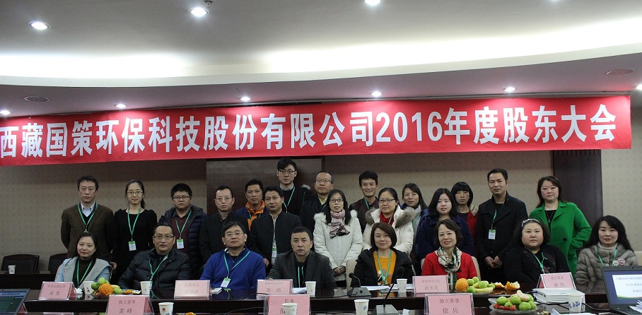 西藏國策環(huán)保科技股份有限公司2016年度股東大會于2月9日在成都召開,股東大會由董事會秘書楊偉強主持。董事長兼總經(jīng)理陳鴻、副董事長范津濤、副總經(jīng)理幸川、財務(wù)總監(jiān)趙永花、證券部經(jīng)理張麗、監(jiān)事會主席蘇昌軍等公司董事、監(jiān)事及核心成員出席本次會議。