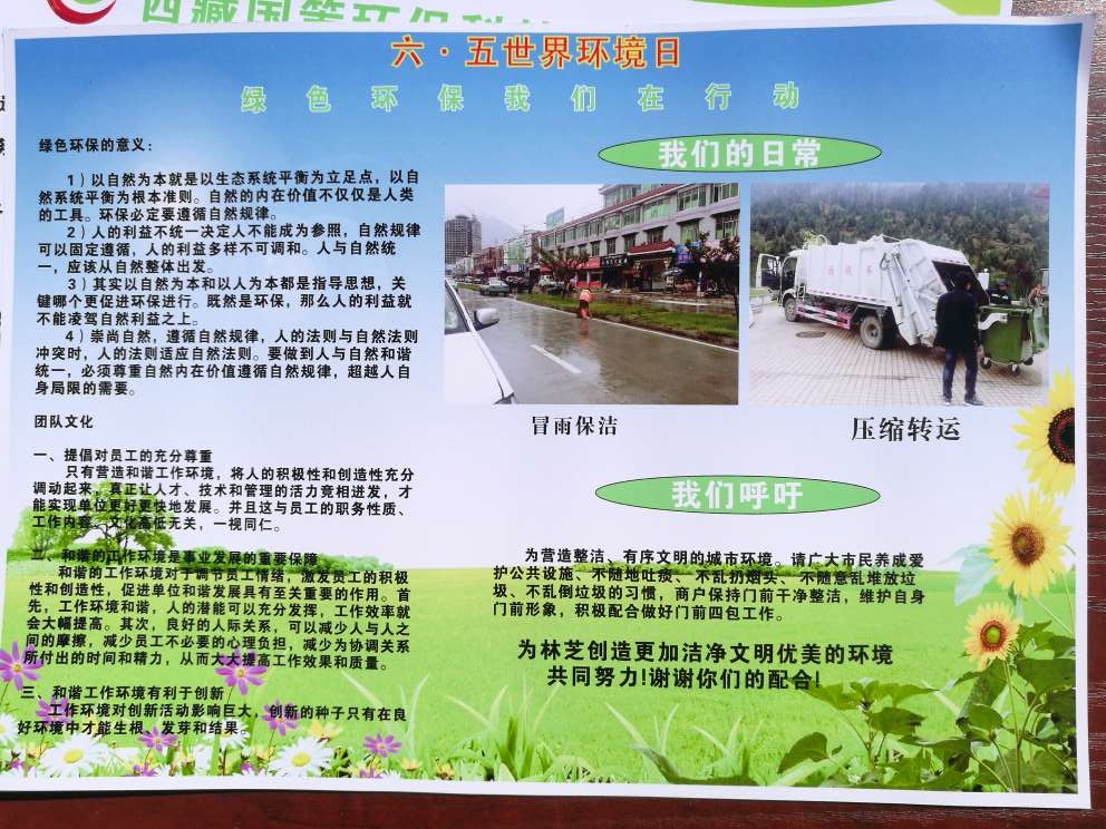 2017年6月5日,在林芝市巴宜區(qū)廈門廣場開展《六五世界環(huán)境日》環(huán)保宣傳活動,——“青山綠水便是金山銀山”,呼吁廣大市民、游客等廣大群眾參與保護雪域高原最后的碧水藍天;此次活動由林芝市環(huán)保局牽頭組織舉辦,參與活動單位:林芝市市政管理局、西藏國策環(huán)保科技股份有限公司林芝分公司、林芝市農(nóng)牧局、林芝市國土資源局、林芝市發(fā)改委、中國華能、巴宜區(qū)環(huán)保局、林芝市商務局、林芝市科技局、林芝市林業(yè)局等單位。活動現(xiàn)場也聚集市民、游客等參與環(huán)保宣傳和學習環(huán)保知識。