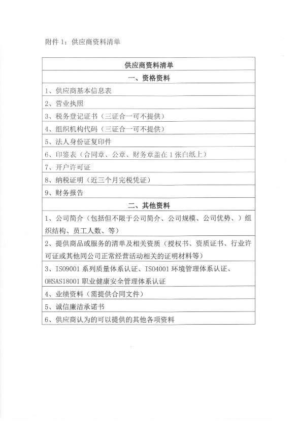 1、擬入庫供應商須根據(jù)公司要求提供相關資料,相關資料經(jīng)公司審核后方可入庫。