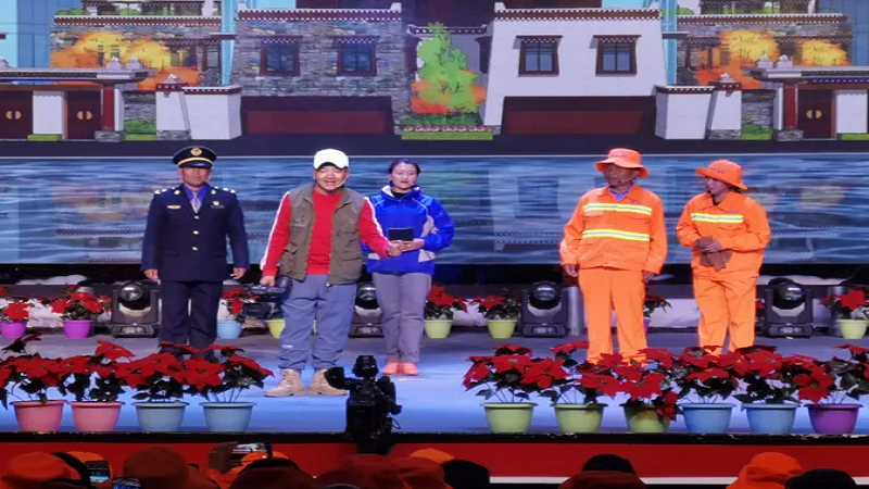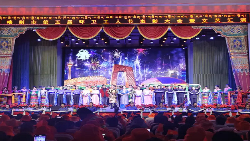 為慶祝“環(huán)衛(wèi)工人節(jié)”這一個平凡而偉大的節(jié)日,鼓舞全體環(huán)衛(wèi)工人的士氣,10月26日晚,由日喀則市委、市政府主辦,市城市管理和綜合執(zhí)法局、市文化局承辦的主題為“頌現(xiàn)代化新西藏 展環(huán)衛(wèi)工新風(fēng)采”第五屆環(huán)衛(wèi)工人節(jié)表彰大會暨文藝匯演在日喀則市職業(yè)技術(shù)學(xué)院舉行,國策環(huán)保日喀則分公司作為參與方積極參與了此次活動。