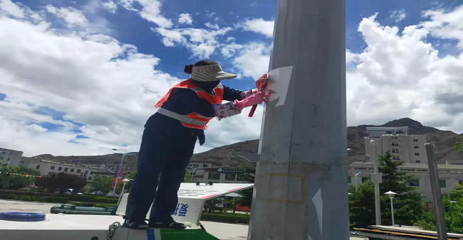 同時(shí),山南分公司還調(diào)配了15名員工、1輛高壓沖洗車、1輛灑水車、1輛洗掃車、1輛多功能沖洗車組成了體育場臨時(shí)清洗隊(duì),對體育場垃圾桶、電樁小廣告、周邊雜草以及地面等進(jìn)行了集中清理,通過采取高壓水槍沖洗和人工擦拭相結(jié)合的方式,體育場周圍環(huán)境及設(shè)施煥然一新,顯露“本色”。