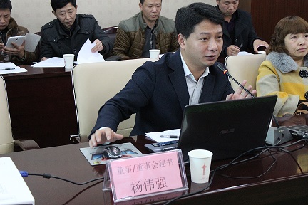 (圖為董事長兼總經(jīng)理陳鴻做董事會工作報告)